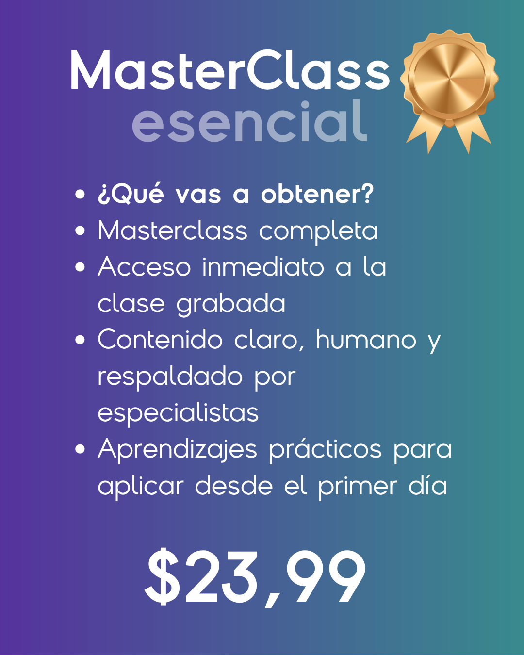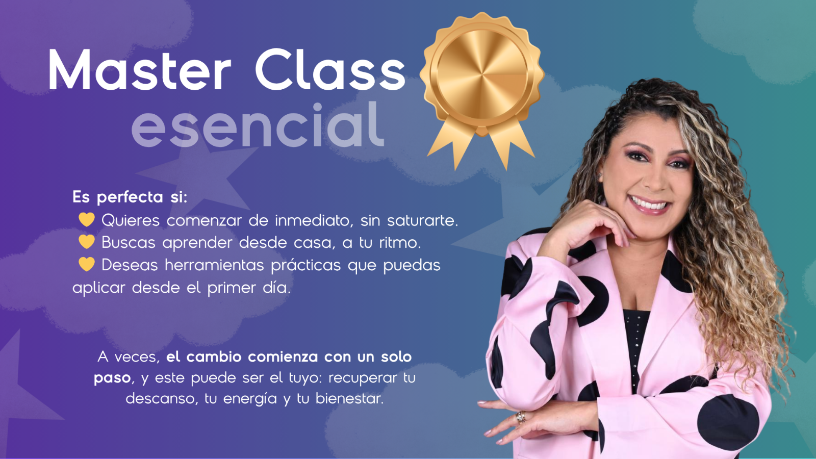 Por eso, esta Masterclass te ofrece tres caminos para alcanzar el descanso que mereces: uno para dar tu primer paso, y otro para vivir la experiencia completa con acompañamiento y herramientas exclusivas.